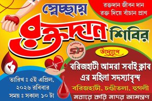 রক্তদান শিবির একটি মহৎ উদ্যোগ, যা মুমূর্ষু রোগীর প্রাণ বাঁচাতে ও রক্তের অভাব পূরণে অত্যন্ত গুরুত্বপূর্ণ। বিশেষ করে এই গ্রীষ্মের প্রারম্ভে রক্তের ঘাটতি শুরু হয়। ঠিক এই সময়েই হুগলি জেলার চন্ডীতলা থানার বরিজহাটি গ্রামের “আমরা সবাই” ক্লাবের সদস্য সদস্যরা এগিয়ে এসেছেন এই মহতী উদ্যোগে। কলিকাতার সাগর দত্ত হাসপাতালের সহোযোগিতায় এই রক্তদান শিবির অনুষ্ঠিত হয়ে গেল গত ৫ এপ্রিল ২০২৬ রবিবার সকালে।